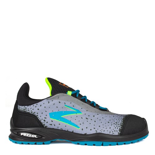 Low-cut safety shoe with dynamic and sporty design made of breathable technical fabric. Additional X-Leather inserts made of printed leather with PU multilayer reinforcement, that guarantee maximum abrasion resistance.