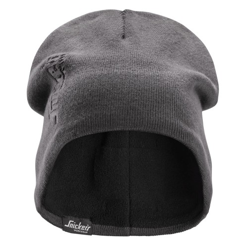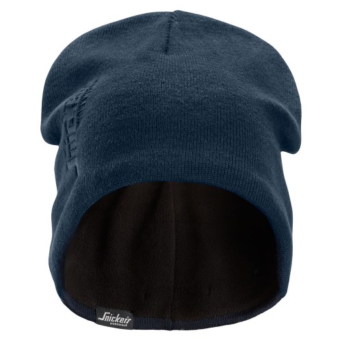 Knitted beanie with wind-blocking membrane and soft fleece lining that provides warmth and comfort in cold and windy conditions. The beanie also has a debossed Snickers workwear logotype.